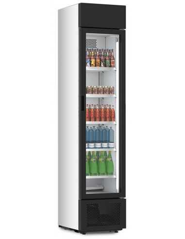 Refrigerated display case with glass door - Model SLIMP - Temperature +2 +8°C - Ideal for drinks and for every type of fresh food - Net capacity liters 197 - Energy class D - Dimensions cm 43.5 x 50.9 x 200.5 h