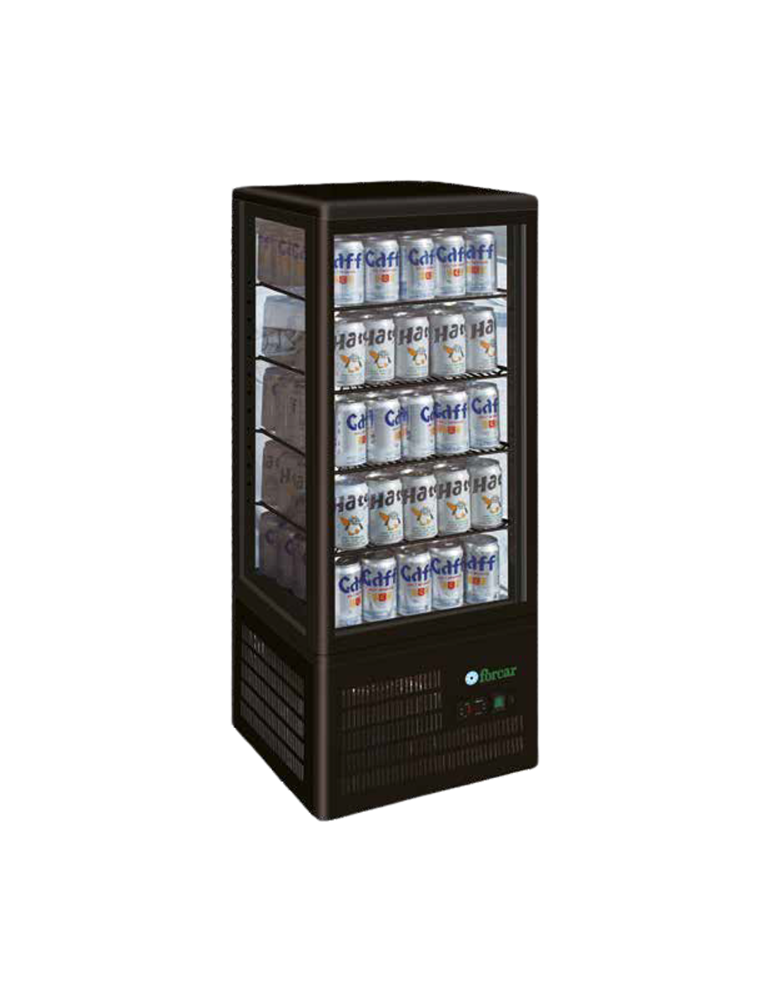 Refrigerated display case - Model TCBD98B- 4-sided display - Ventilated - Temperature +2/+8°C - Capacity lt 98 - Dimensions cm 42.8 x 38.6 x 115h