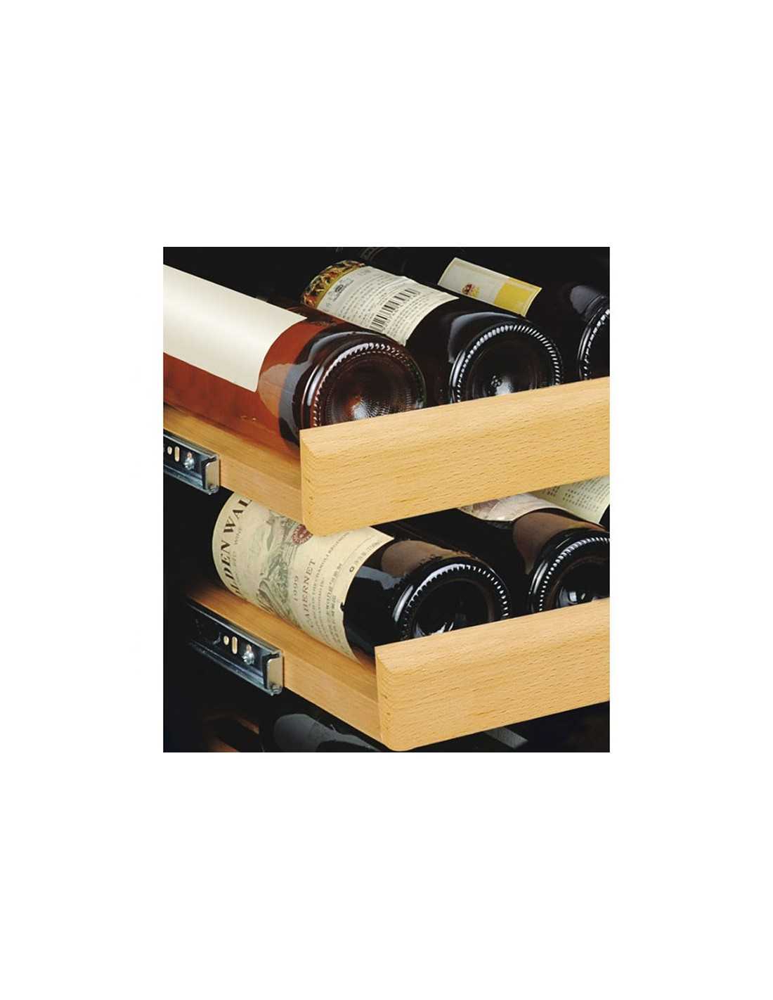 Refrigerated wine displayer - Model: SOMMELIER482ZFG - Double zone Temperature +5°C/ +20°C (Sup) and (Inf) - Capacity liters 450 - LED lighting - Wood Grills - Capacity n.141 bottles - Ventilated - Automatic Defrost - Dimensions cm 59.5 x 69.5 x 186.5 h
