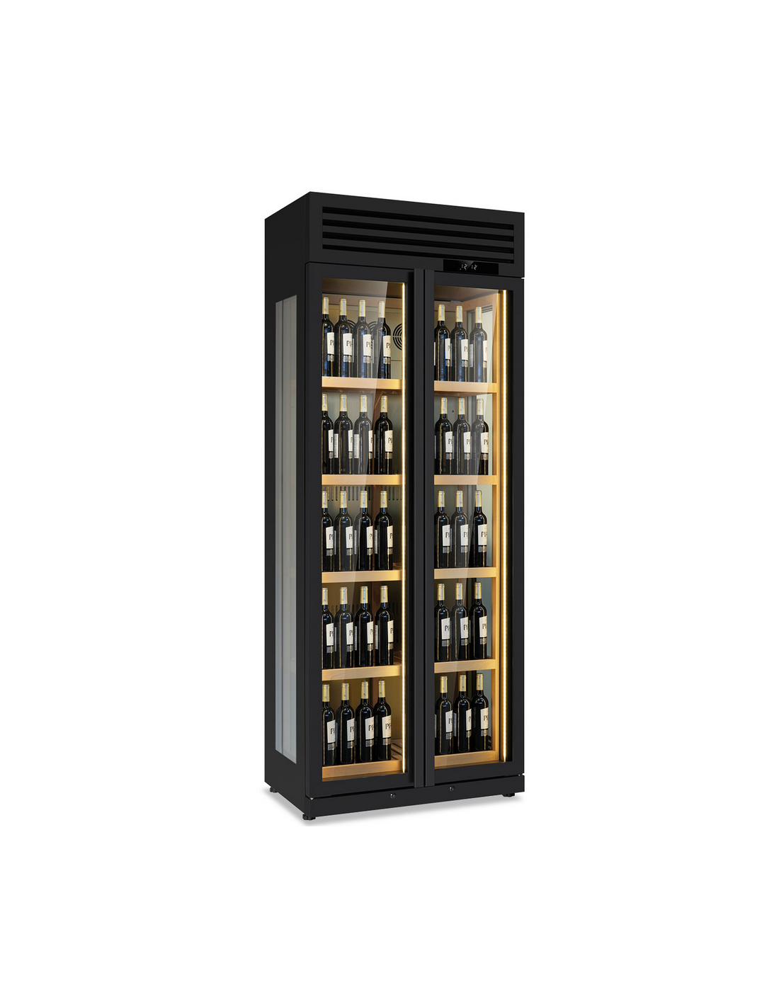 Ventilated wine refrigerator - Temperature +3°+20°C - Capacity liters 695 - N. 2 doors - N. 5 wooden shelves - Led lighting - Power W 800 - Cm 90 x 58.2 x 230.5 h