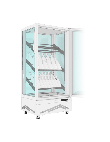 Wine exhibitor - Model MARILYN WINE - Capacity lt 450 - Temperature +4 +18°C - Optional: transaction 4.0 configuration - N°3 height adjustable tilted shelves -Dimensions Cm 70 X 71 X 191h