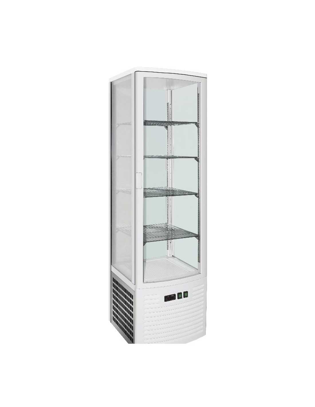 Vitrina refrigerada - Modelo G-LSC280-4 lados de exposición - Ventilado - Con doble acristalamiento - Temperatura +2/+8°C - Capacidad lt 280 - Chapa pintada y plástico - Iluminación LED - Dimensiones 47,3 x 40,5 x 184,2h