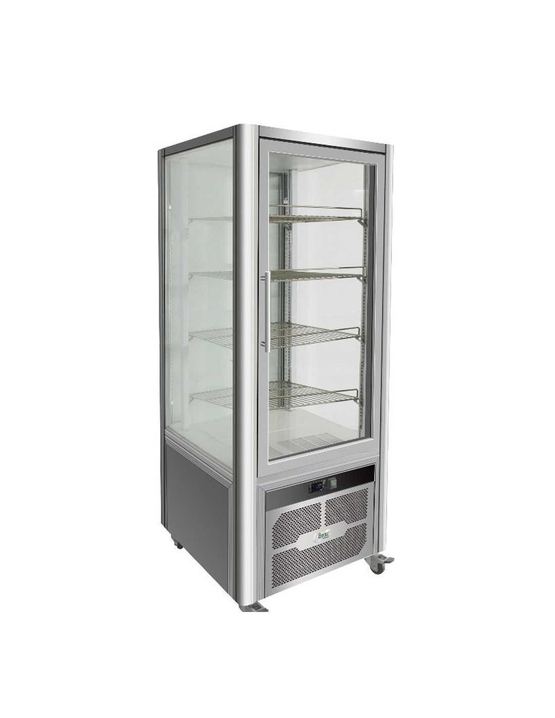 Vitrina refrigerada - Modelo VGP400R - 4 caras de exposición - Ventilado - Con doble acristalamiento - Temperatura +2/+8°C - Capacidad lt 408 - Acciaio inox AISI 430 - Iluminación LED - Dimensiones 70,6 x 74 x 180h