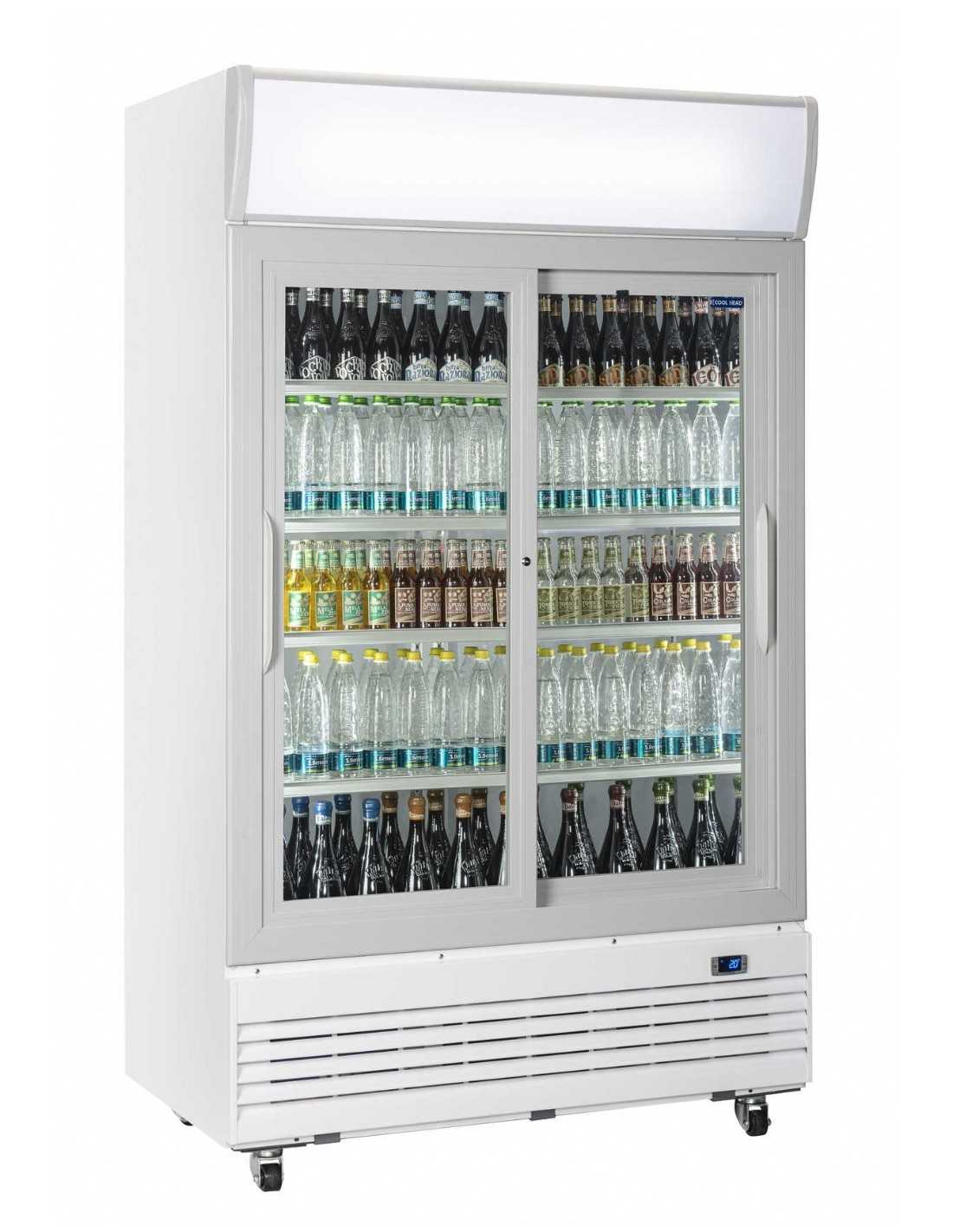 Vitrina refrigerada - ModeloDC1000S- Temperatura +1°/ +10°C - Capacidad litros 1000 - Con publicidad retroiluminada opal - Iluminación LED - Refrigeración ventilada - Puertas correderas - Energía W 650 - Dimensiones cm 120 x 73 x 203,8 h