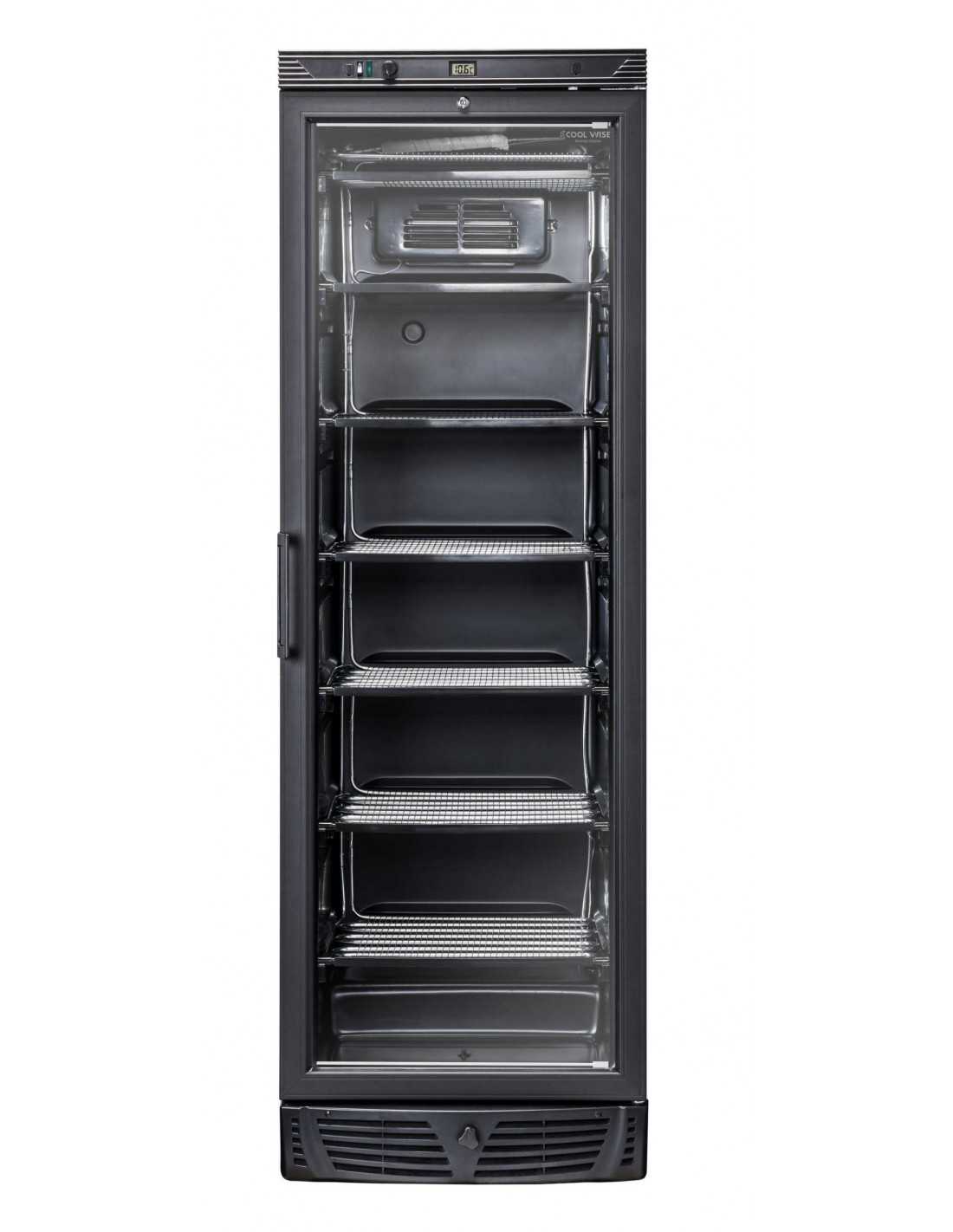 Armario congelador - ModeloTNG390B - Exterior de chapa pintada en negro e interior termoformado en negro - Temperatura -20°/ -15°C- Capacidad 300 litros - Refrigeración estática con estantes evaporadores - N. 7 estantes fijos - Energía W 620 - Dimensiones cm 60 x 63 x 187 h