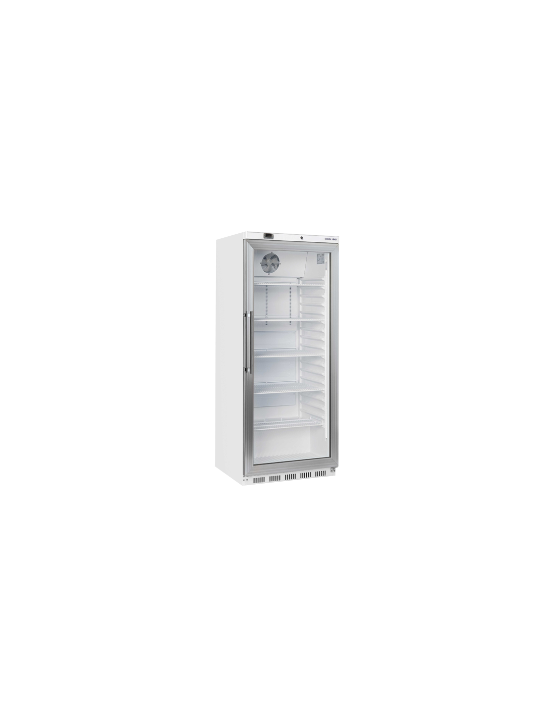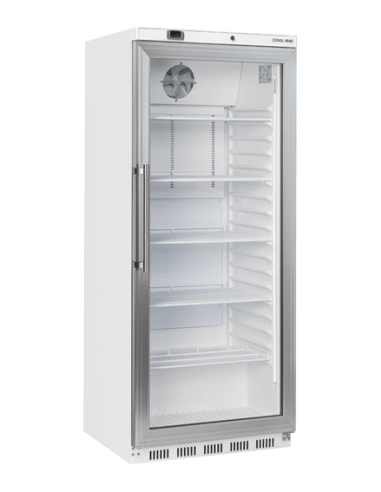 Armario refrigerado con puerta de cristal - Modelo QRG600 - Refrigeración Roll-Bond con ventilador de asistencia - Blanco con interior termoformado - Capacidad Lt. 600 - Clase climática 3 - Temperatura +3/+10°C - Dimensiones exterior cm 78 x 75,8 x 189,5h