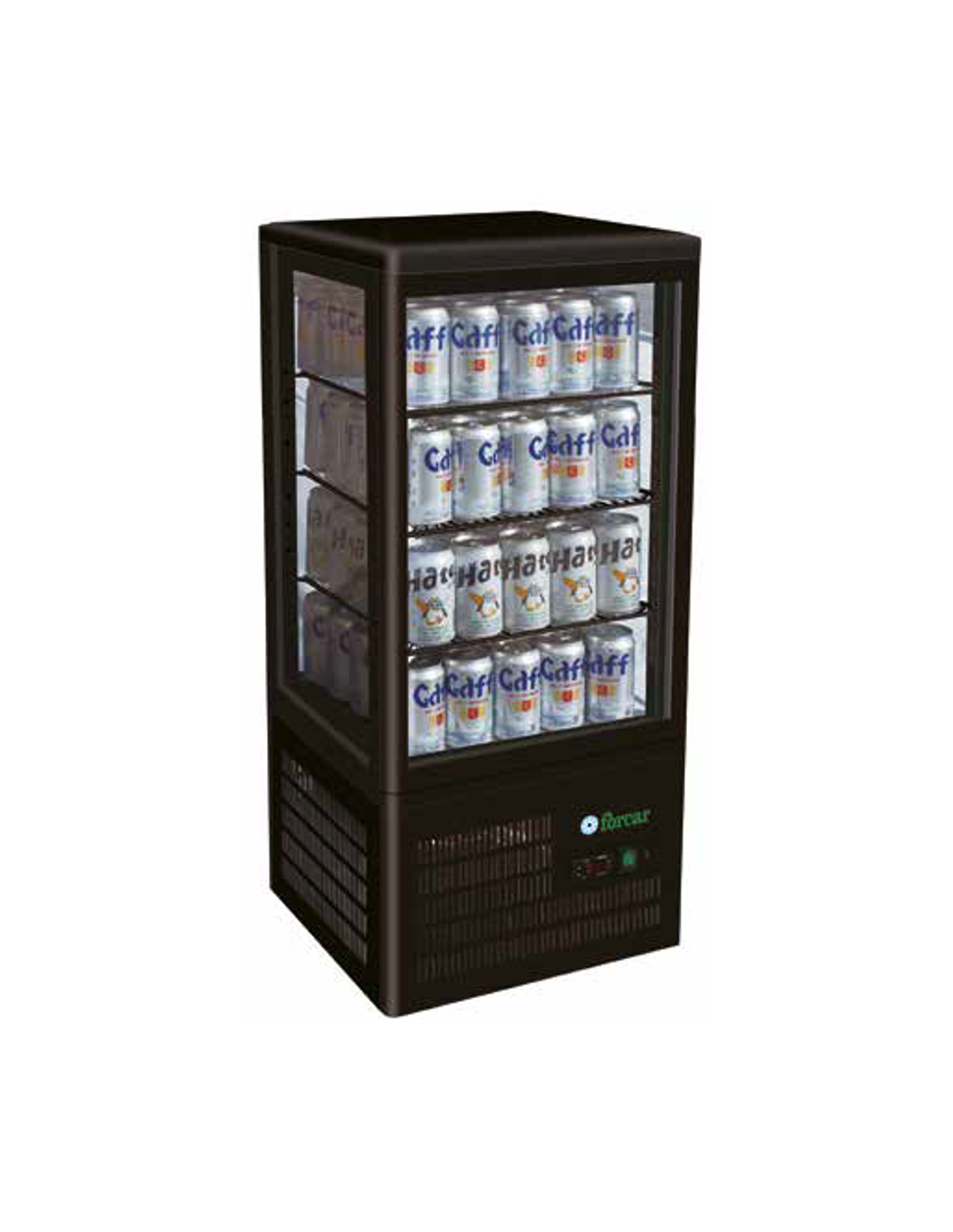 Vitrina refrigerada - Modelo TCBD68B- 4 caras de exposición - Ventilado - Temperatura +2/+8°C - Capacidad lt 68 - Dimensiones cm 42,8 x 38,6 x 92,4h