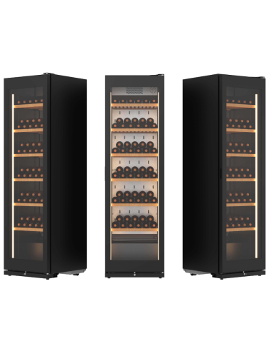 | Ideal para vinotecas, bares y tiendas especializadas, hoteles y restaurantes. Diseño interior amplio y atractivo con estantes de madera e iluminación LED. |