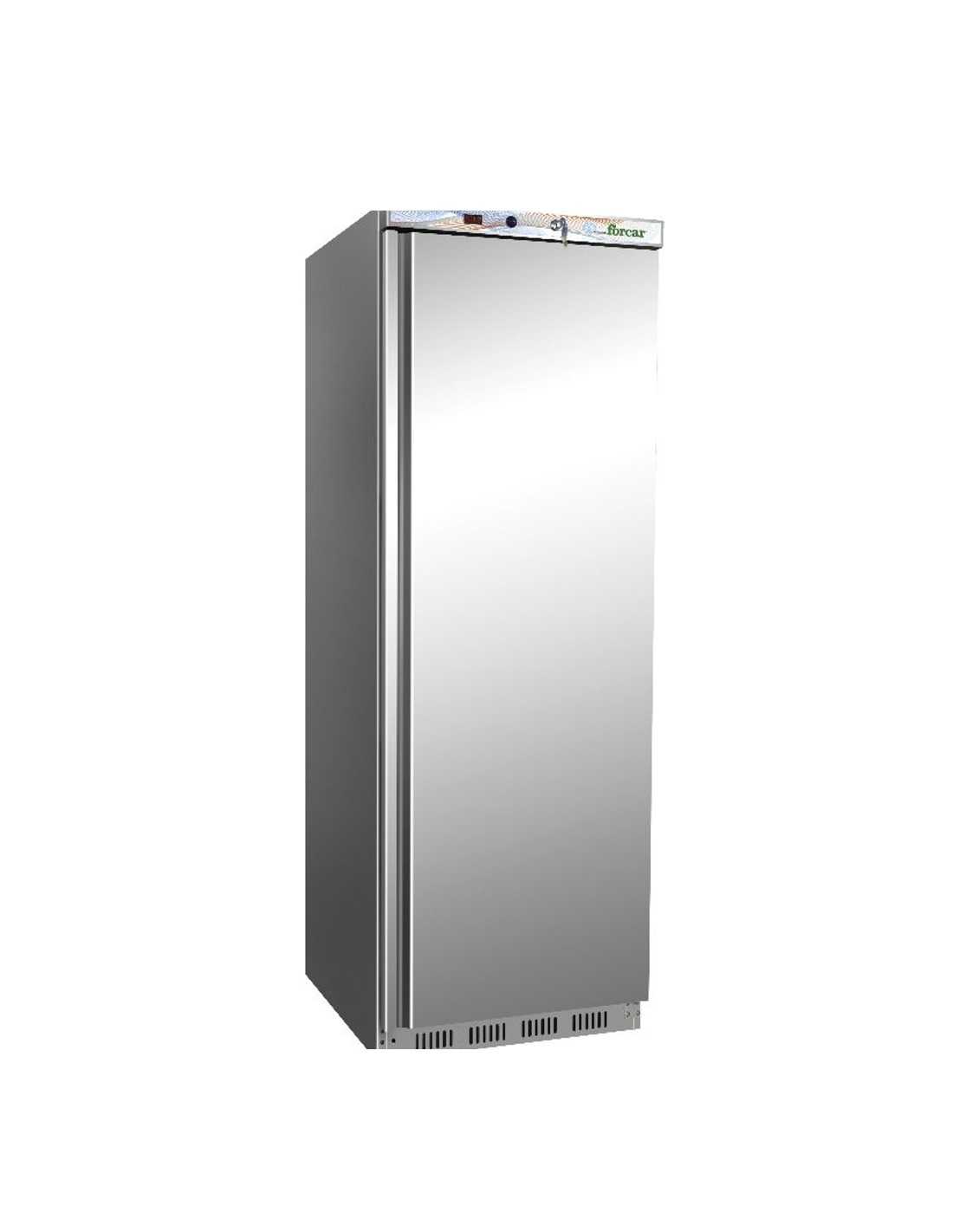 Armario frigorífico profesional - Modelo ER400SS - Temperatura +2/+8°C - Capacidad lt 340 - Clase energética C - Refrigeración estática - Exterior de acero inoxidable - Interior de ABS - Gas refrigerante R600a - Dimensiones interior Cm 51 x 48,5 x 162 h - Sin iluminación - Dimensiones cm 60 x 58,5 x 185,5 h