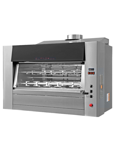 Asador planetario de leña - Modelo LEGNA126P - Capacidad N . 126 Pollos - Discos planetarios de acero inoxidable no. 12+ 6 varillas cm 11.5- Sistema grill plus de doble motor - Puertas laterales abribles para carga de leña - Dimensiones cm 159 x 135 x 130h