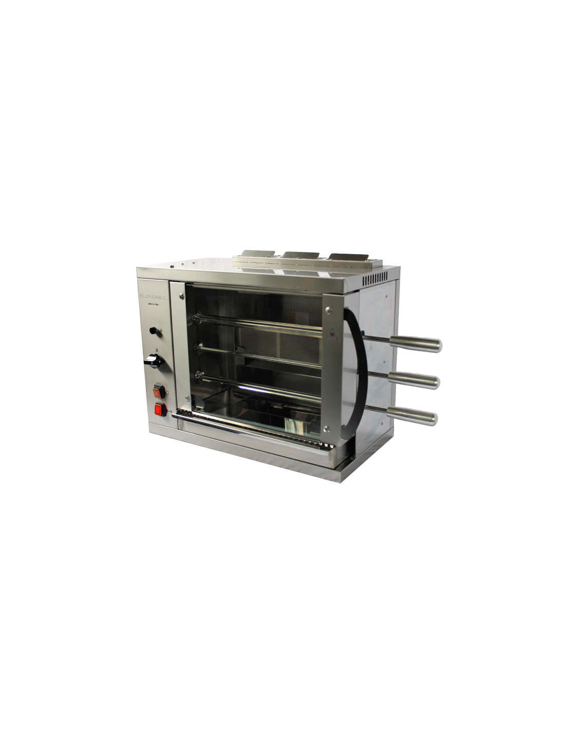 Multiparrilla eléctrica - Modelo CEV2 - Estructura soporte de acero inoxidable -N.1 resistencia con regulador de energía - N. 2+1 espadas de acero - Alimentación 230V monofásica - Energía 1,8 KW - Dimensiones cm 58,7 x 31,5 x 45 h