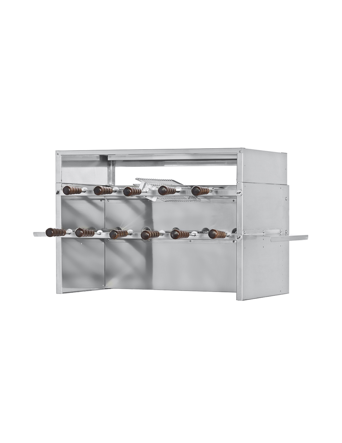 Churrasco empotrable de 11 espadas - Modelo CHURRASCO-M11 - N. 11 espadas surtidas de acero inoxidable cm 50 - N° 2 pisos - Energía 55 W - Conexión monofásica 230V - Dimensiones cm 80 x 57 x 58 h