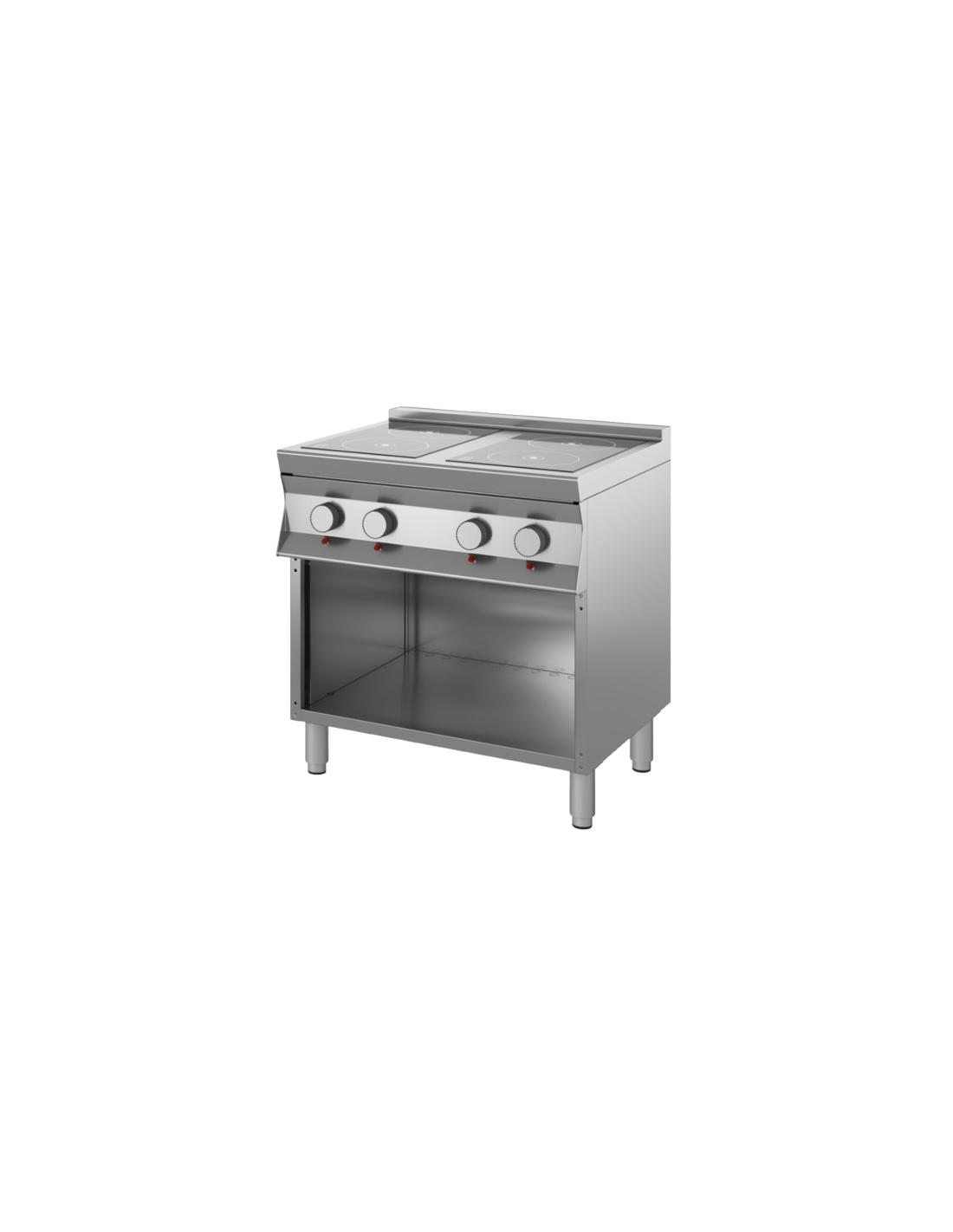 Cocina vitrocerámica - Eléctrica - Modelo 9CVCE2A - N° 4 placas - Compartimento abierto - Energía trifásica - Dimensiones cm 80 x 90 x 90 h
