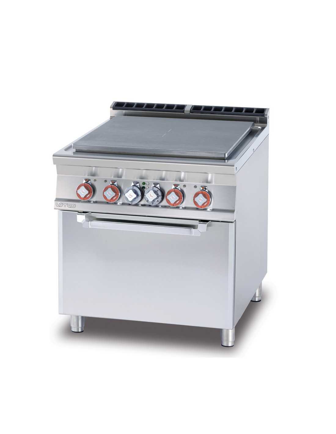 Cocina eléctrica - Placa - Modelo TPF-98ET - Horno eléctrico estático GN 2/1 - Bastidor de acero inoxidable AISI 304 - Energía kW total 20,3 - Dimensiones cm 80 x 90 x 90 h
