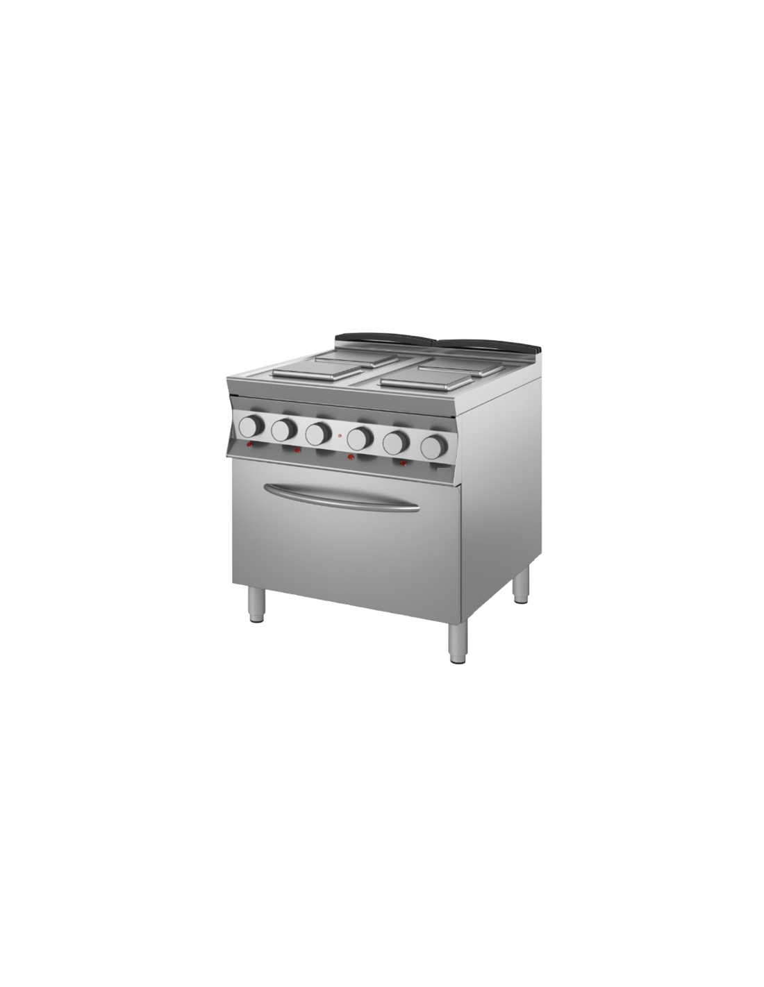 Placa de cocción - Eléctrica - Modelo CPSE2FE - N° 4 placas - Tamaño de la placa cm 22 x 22 - Horno eléctrico estático con función grill GN 2/1 - Placas cuadradas - Energía trifásica - Dimensiones cm 80 x 90 h