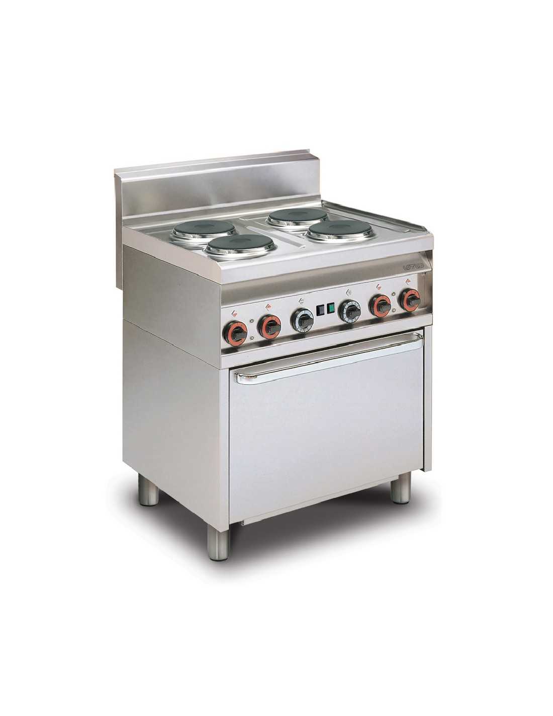 Cocina eléctrica - Modelo CF4-8ET - Horno eléctrico - Cámara del horno cm 64 x 37 x 35 h - Temperatura horno +50°C+250°C - Puerta ciega - N° 4 placas - Dimensiones cm 80 x 65 x 87 h