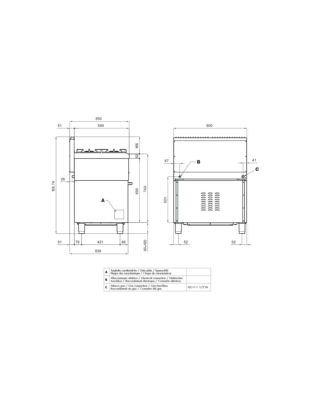 | Gran horno estático de gas con grill, con gran puerta, equipado con encendido eléctrico. | |