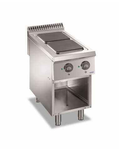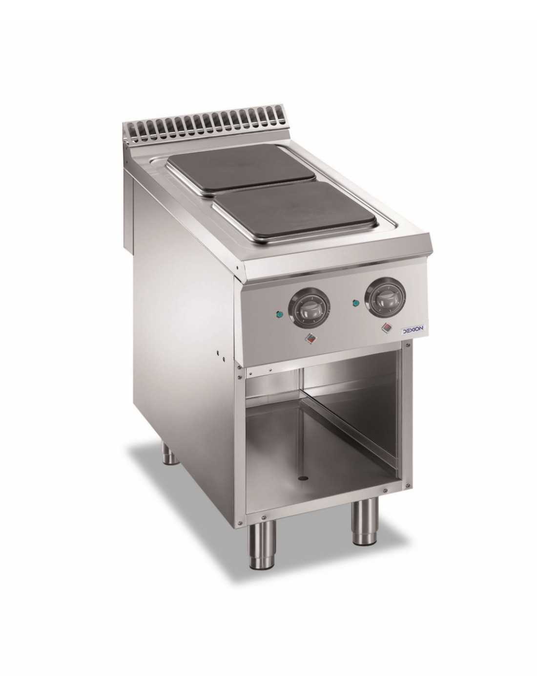 Cocina eléctrica - Modelo DXMPQ94A - N.2 placas - Compartimento abierto - Energía placas 2 x kW 3 - Energía trifásica V400/3/50Hz - Cm 40 x 90 x 85 h