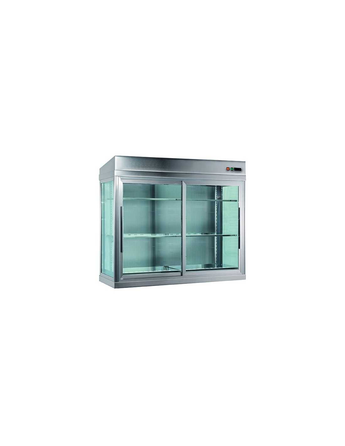Carnicero colgante - Modelo WALL300 - Estructura de acero inoxidable AISI 304 - 2 + 2 + 2 estantes - 1 lado expositor de cristal - 3 puertas correderas - Temperatura +2/+10°C - Descongelación eléctrica automática - Dimensiones cm 300 x 55 x 88 h