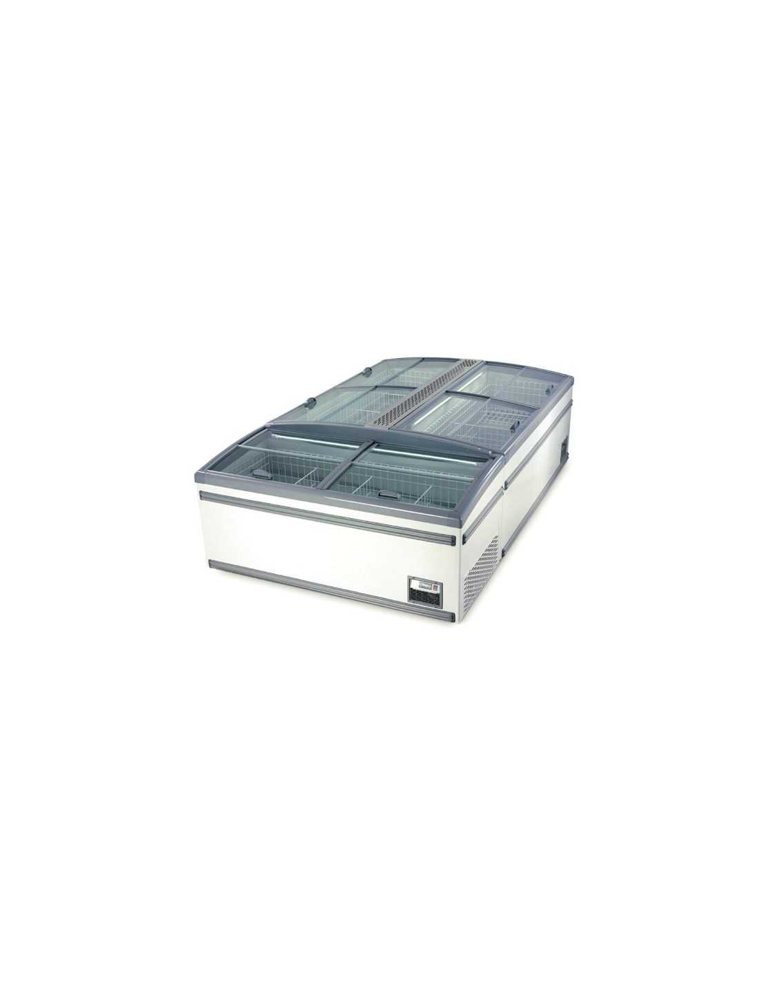 Isla refrigerada - Modelo IGLOO21 - Capacidad lt 850 - Cristal plano inclinado - Temperatura -18°/ -21°C - Refrigeración estática - No frost - N.4 Separadores - Dimensiones cm 210 x 85 x 87 h