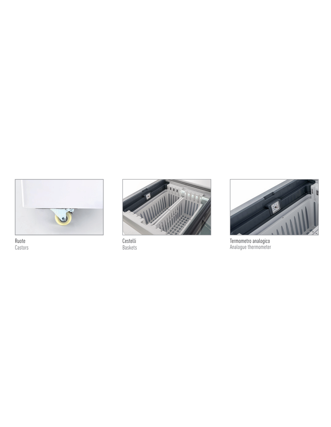 Congelador y frigorífico horizontal - Modelo FRC - Capacidad 309 litros - Cristal plano deslizante - Estático - Dimensiones cm 123,4 x 65,3 x 90 h