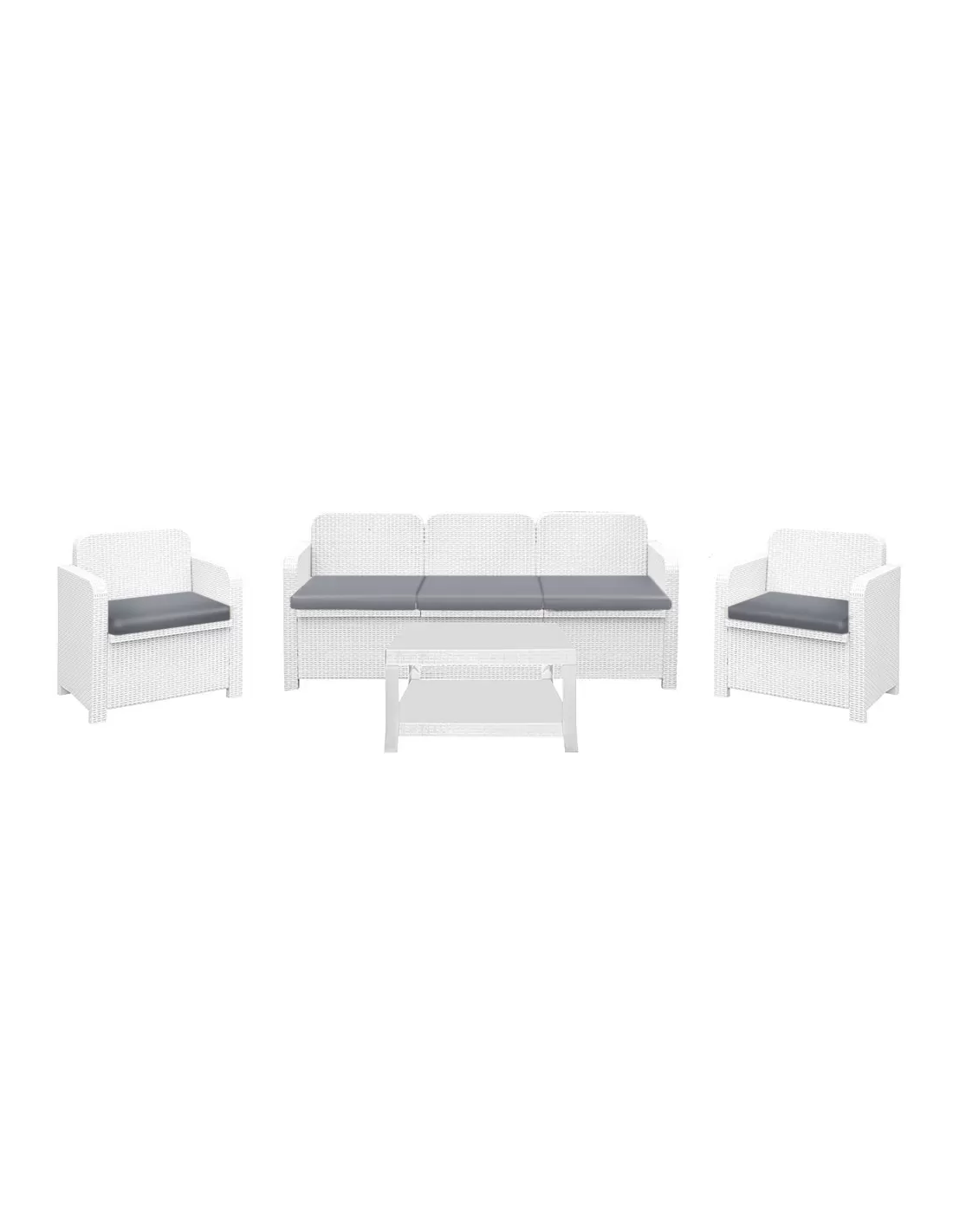 Set de polipropileno y fibra de vidrio - Dos sillones - Sofa 2 asientos - Mesa cm 62 x 62