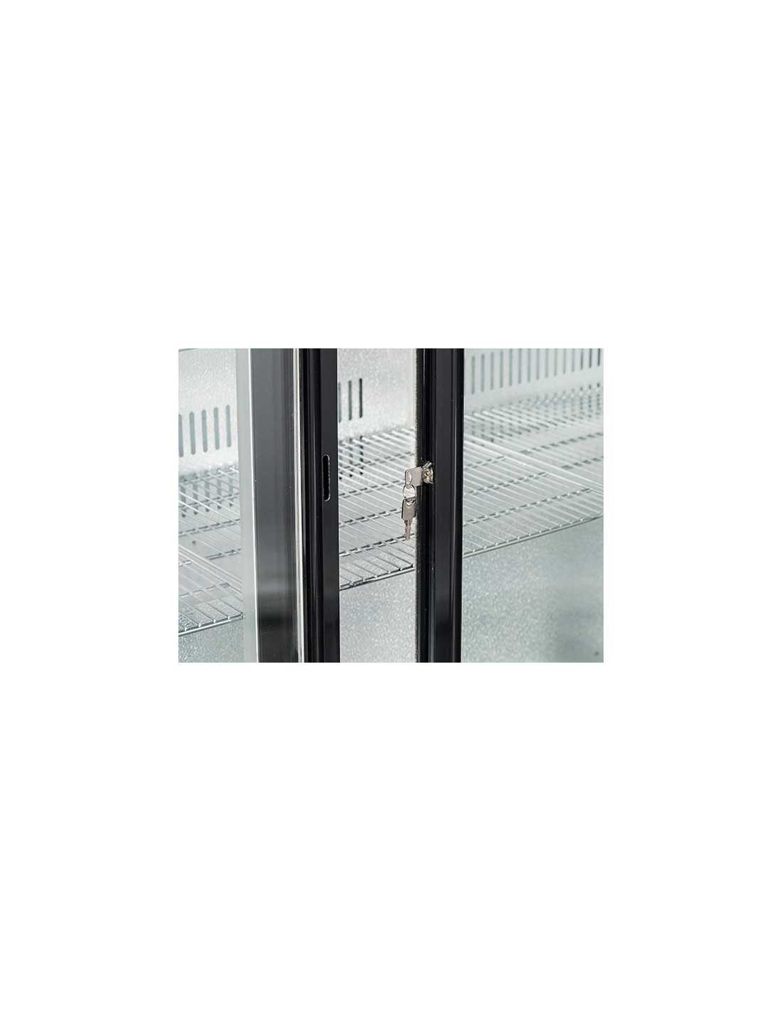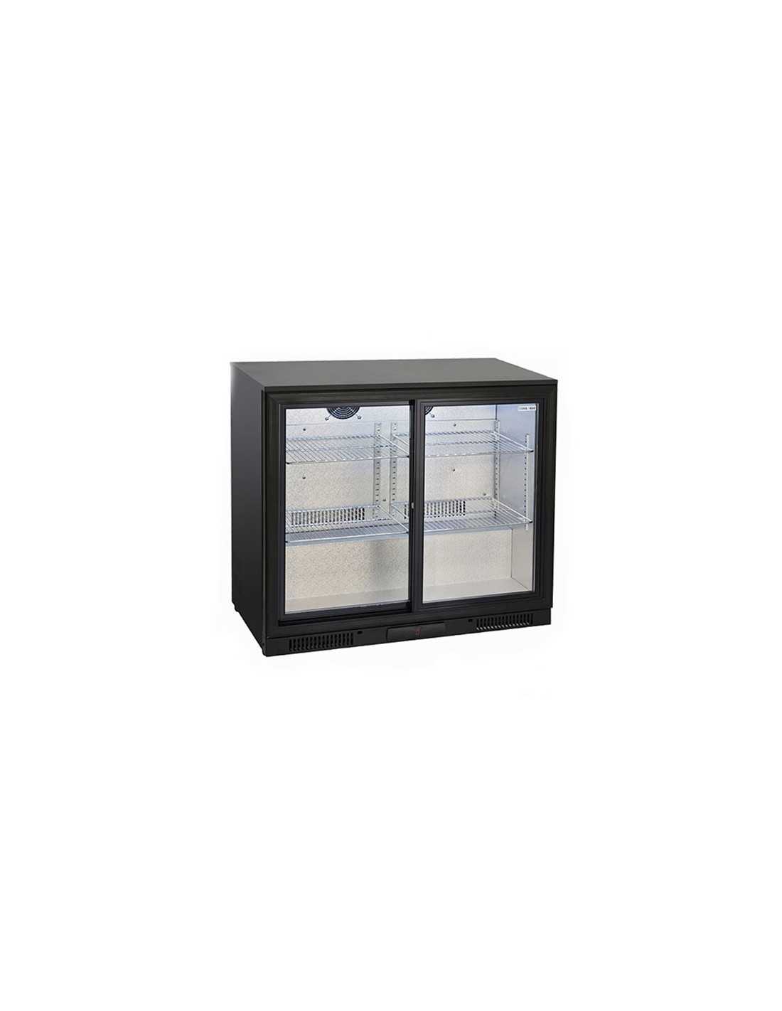 Vitrina refrigerada/mostrador trasero - Modelo BBC286S - 2 puertas correderas de cristal - Interior de aluminio, exterior de acero pintado de negro - Temperatura +1°/ +10°C - Capacidad litros 197 - Refrigeración ventilada - Iluminación LED - Energía W 160 - Dimensiones cm 90 x 52 x 86 h