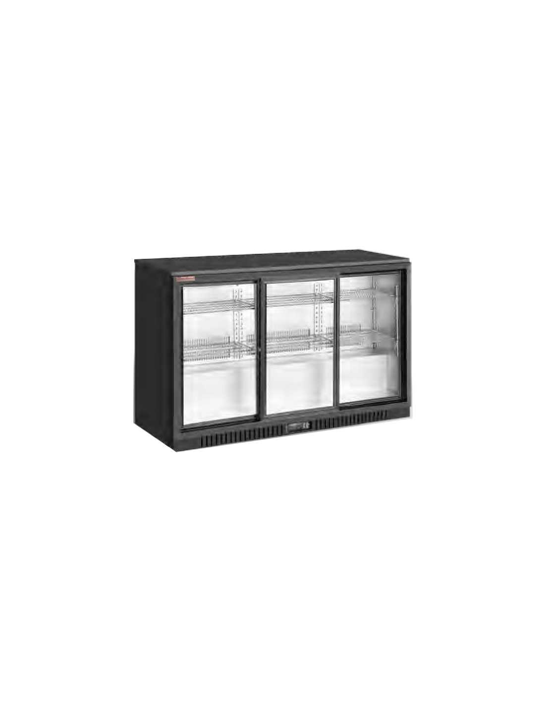 Mostrador trasero refrigerado de tres puertas correderas - Temperatura +2°+10°C - Refrigeración estática con ventilador - Capacidad 330 litros - Cm 135 x 52 x 90 h