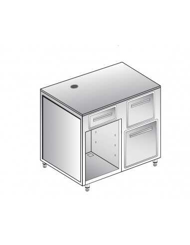 Mostrador para máquina de café - Modelo BMC105355-3000 - Bastidor de acero inoxidable 18/10 AISI 304 - N. 1 cajón neutro - N. 1 tolva de filtro - N. 1 tolva de residuos - Compartimento inferior abierto - Dimensiones cm 100 x 55 x 90 h