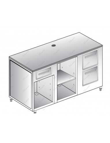 Mostrador para máquina de café - Modelo BMC154355-3000 - Bastidor de acero inoxidable 18/10 AISI 304 - N. 1 cajón neutro - N. 1 tolva para batidor de café - N. 1 cajón de recuperación de posos - Compartimentos inferiores abiertos - Dimensiones cm 150 x 55 x 90 h