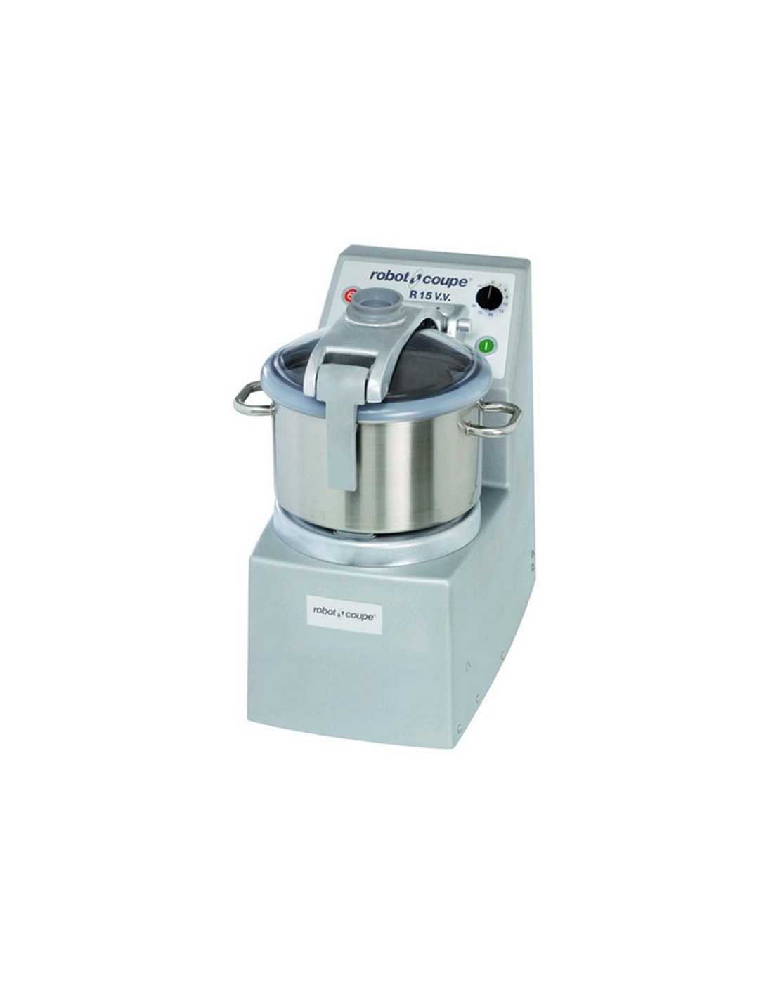 Cortadora de pie - Modelo R 15 V - Capacidad bol de acero inoxidable lt 15 - Capacidad cubiertos de 50 a 250 - Con variador de velocidad - Energía W 3000 - Energía trifásica 400V/3/50Hz - Dimensiones cm 37 x 61,5 x 62 h