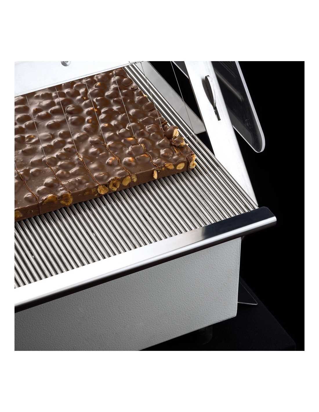 | Diseñada para cortar masas duras, también con almendras, avellanas y frutos secos, así como para porcionar cremini, avellanas, turrón blando, ganache, pequeños pasteles (mousses, parfaits, cremas bávaras), gelatinas, galletas, mazapán | |