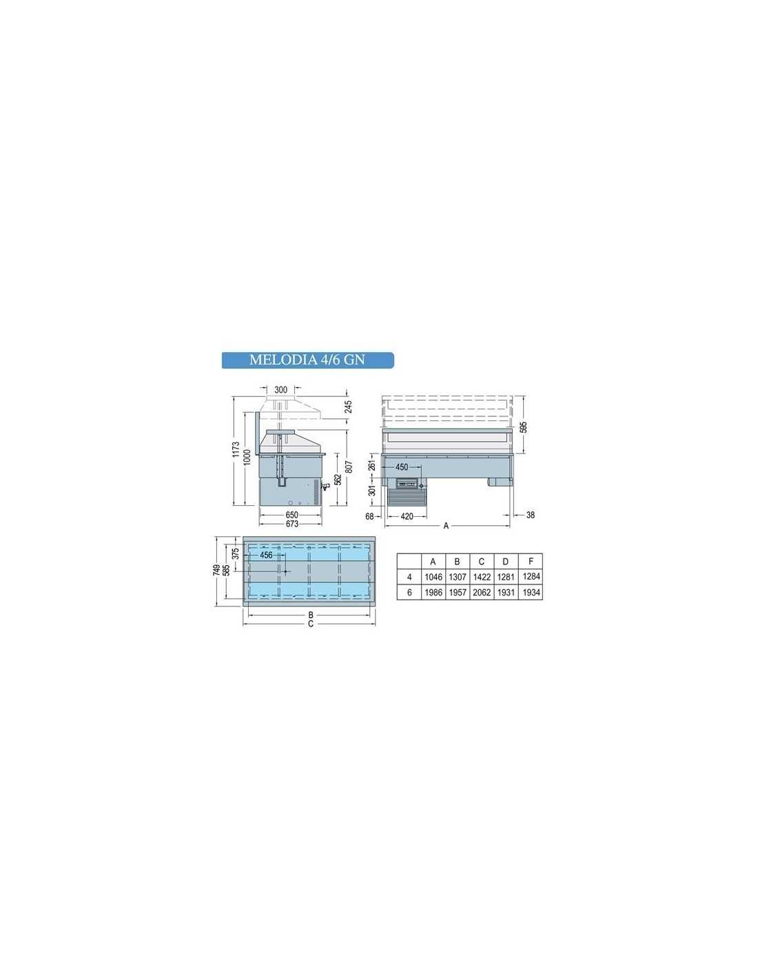 Vitrina refrigerada empotrada -Temperatura +4/+10 °C - Energía W400 - Alimentación monofásica V230/1/50Hz - Dimensiones cm 142,2 x 74,9 x 117,3 h - Peso kg 95