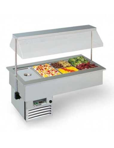 cm Vitrina refrigerada empotrada - Temperatura +4/+10°C - Energía W 400 - Alimentación monofásica V230/1/50Hz - Peso kg 86 - Dimensiones 142,2 x 75 x 117,4 h