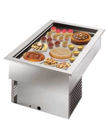 Cubeta de exposición refrigerada empotrada - Capacidad bandejas nº 3 cm 60 x 40 - Superficie de exposición de acero inoxidable cm 61 x 85 - Energía W 320 - Alimentación monofásica V230/1/50Hz - Dimensiones cm 136,2 x 75 x 56,2 h - Peso kg 66