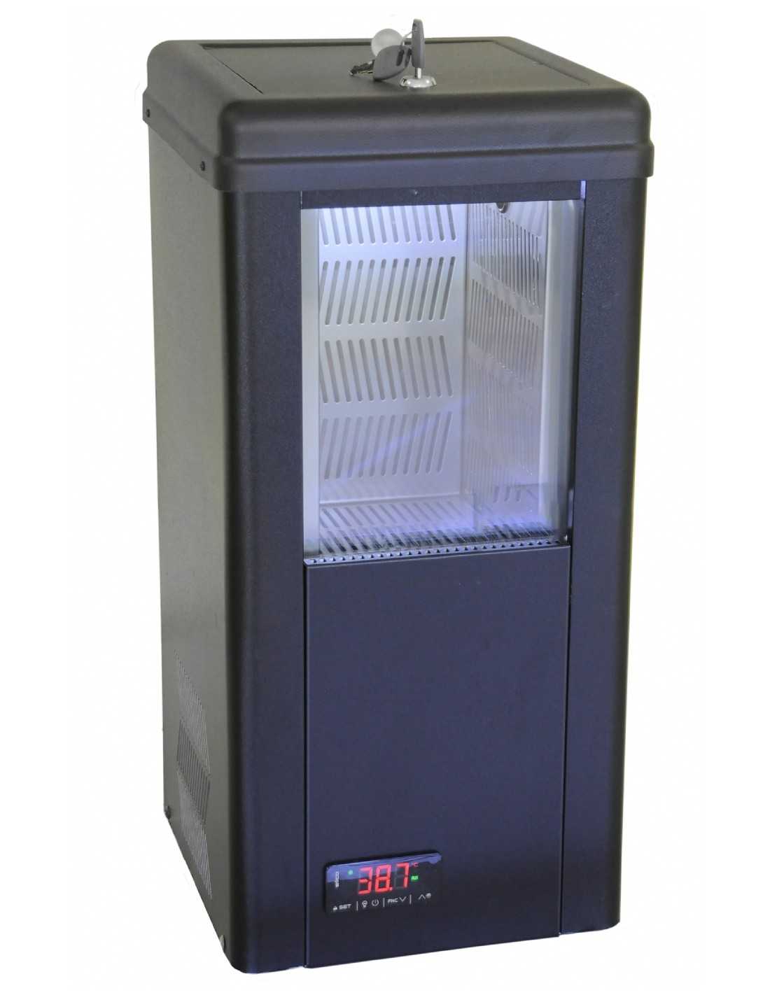 Expositor refrigerado - Modelo MAPO - Temperatura: -5°/ +5°C - Especialmente indicado para la exposición de trufas - Capacidad depósito 8 litros - Iluminación Led - Alimentación monofásico V230/1/50Hz - Dimensiones cm 26 x 26 x 54 h