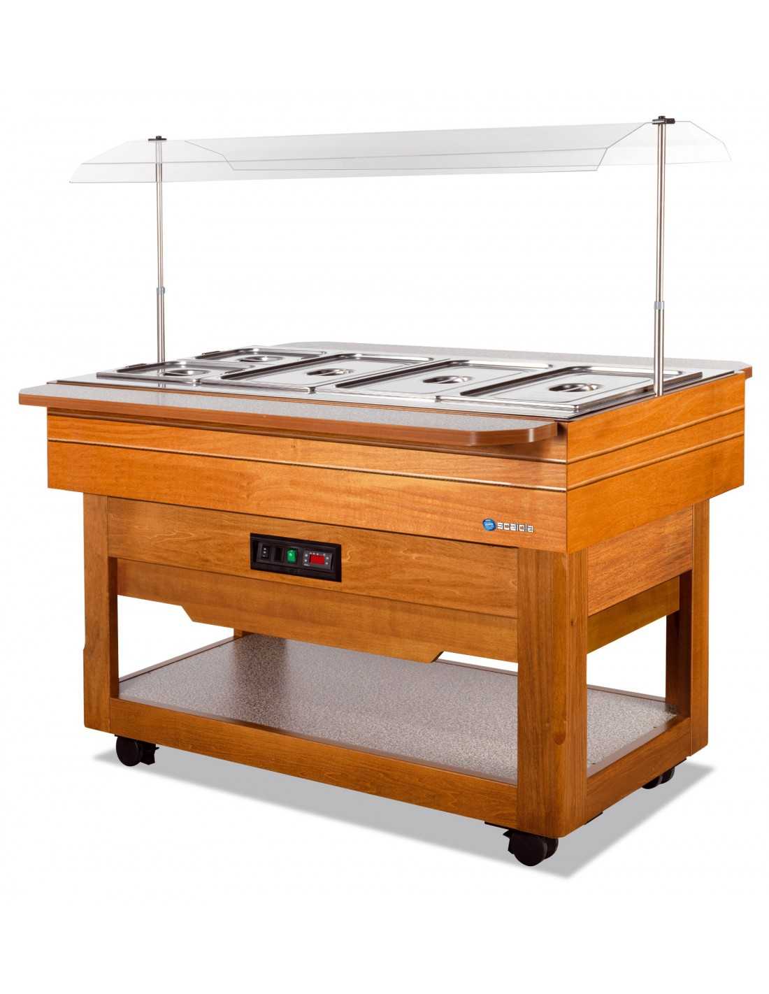 Expositor buffet de madera cálida con tapa fija - Temperatura +30 / +90°C - cm 140 x 107 x 145 h
