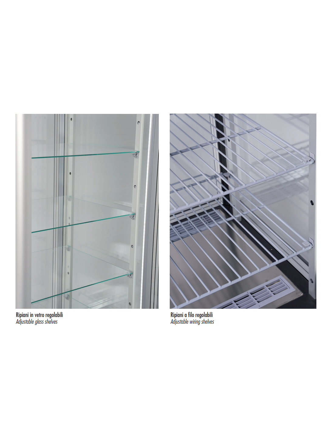 | Acristalamiento triple con doble acristalamiento estándar, a cada lado, para las versiones Refrigeradas, de lo contrario las versiones negativas están equipadas con triple acristalamiento doble de baja emisividad con Gas Argón | |