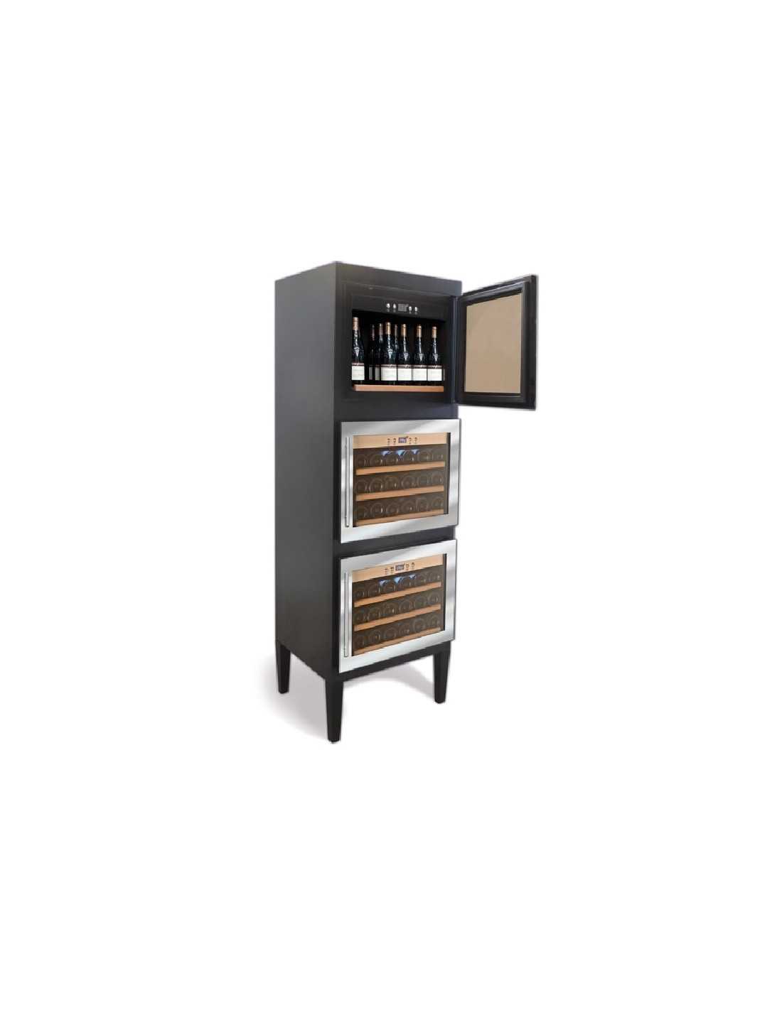 Expositor modular para vinos - Modelo VINITY 3V - Temperatura +5°+20°C - Capacidad litros 150 - Absorción W 210 - Iluminación LED - Capacidad n.54 botellas - Dimensiones cm 65 x 61 x 188 h