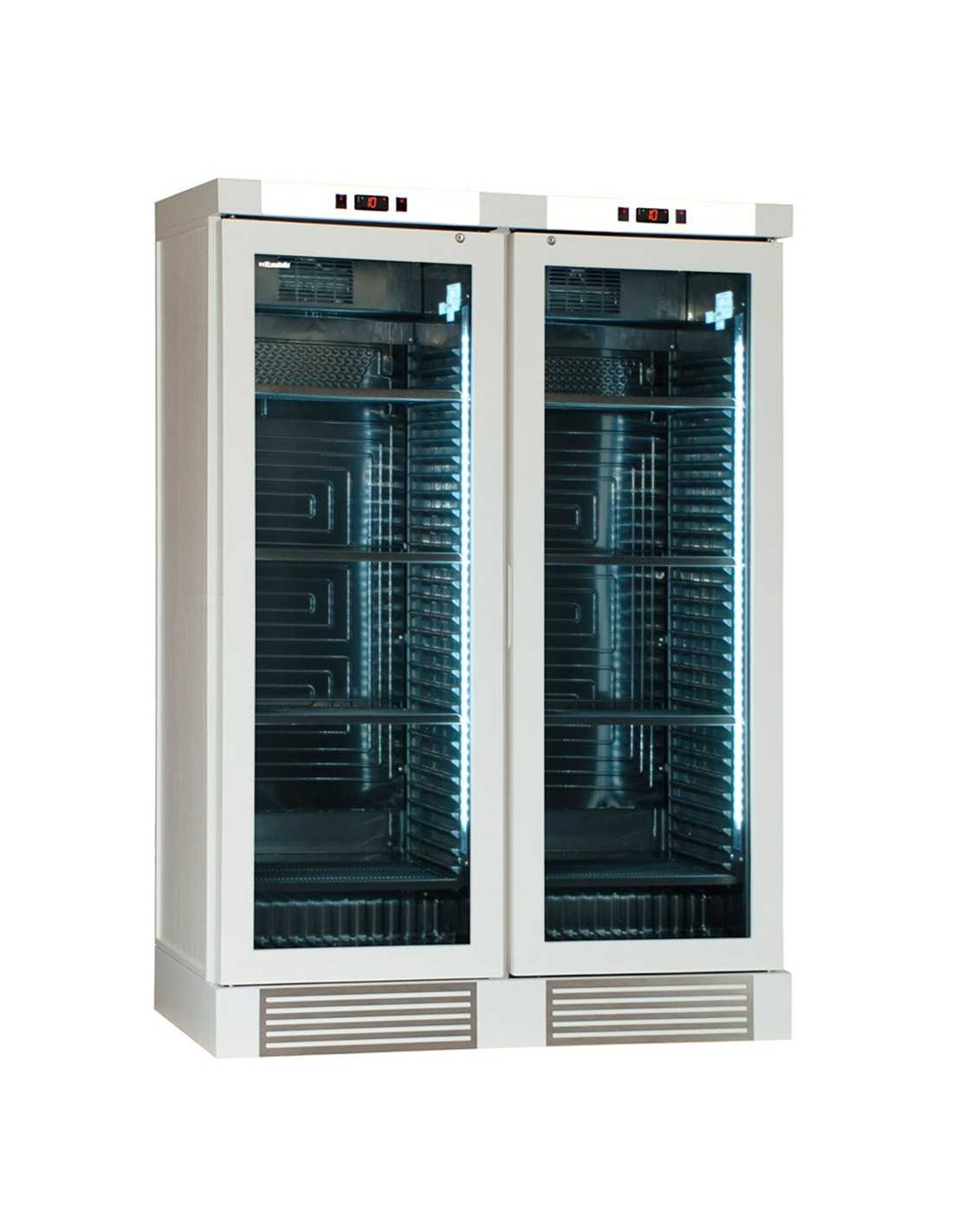 Vitrina refrigerada para vino - Modelo CLW820L-WHITE - 2 puertas de cristal - Estático - Ventilador encendido/apagado - Temperatura +16°C/ +10°C+5°C ventilador apagado - Temperatura +4°C/ +18°C ventilador encendido - Capacidad lt 764 - Dimensiones interior cm 522(x2) x 44.9 x 155.7 h - Dimensiones cm 129.5 x 63.5 x 188 h