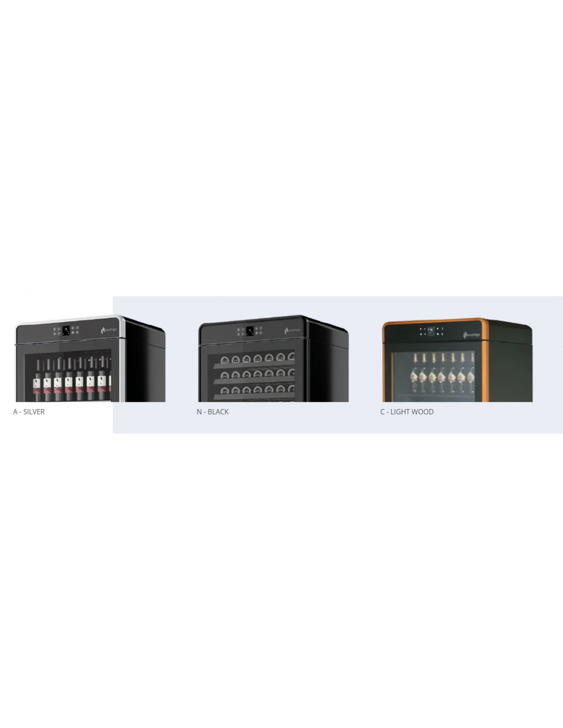 | La versión de refrigeración estática permite obtener cuatro temperaturas diferentes (de 2° a 18°) en la misma unidad, de modo que incluso vinos muy diferentes pueden exponerse a la temperatura ideal | |