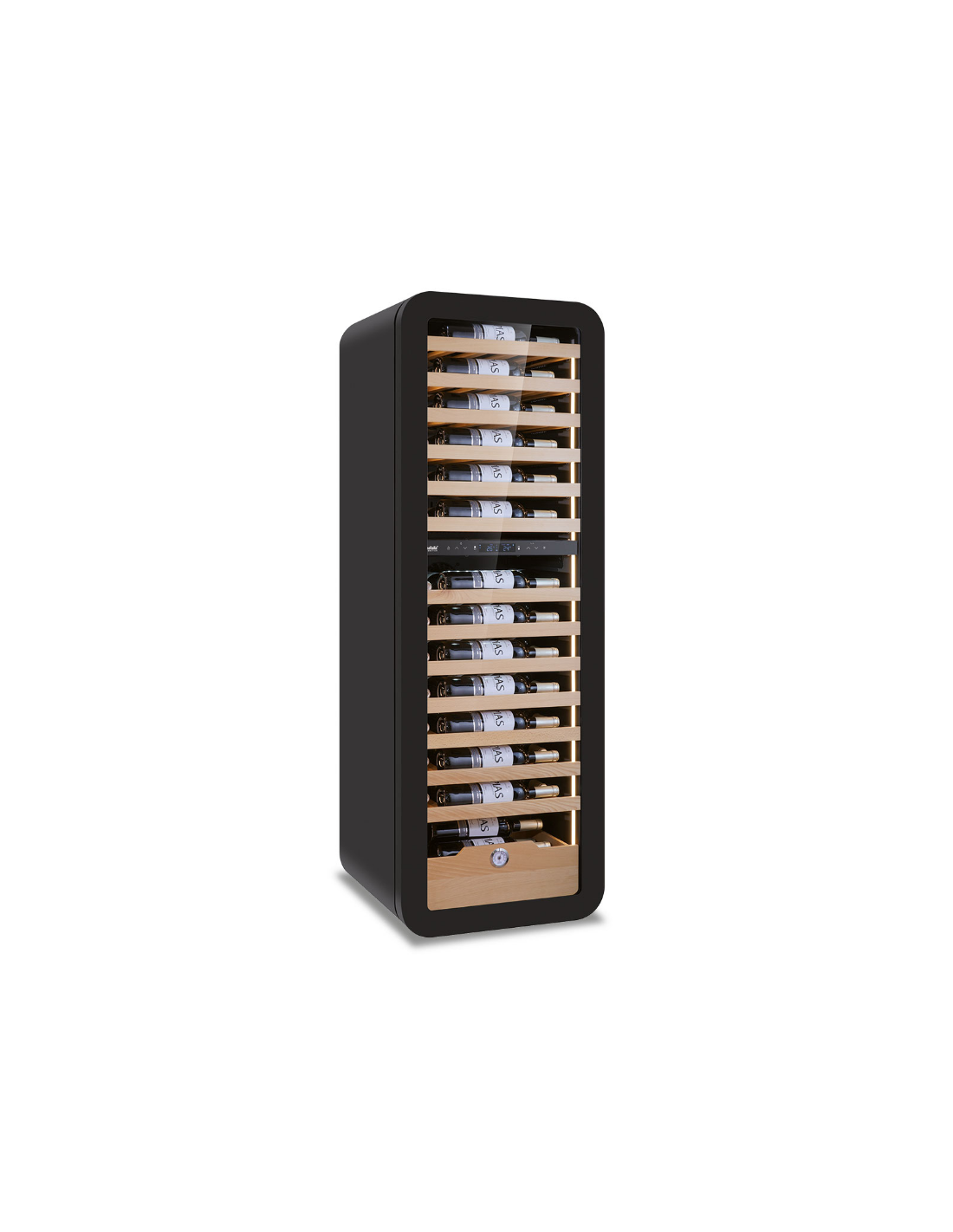 Vitrina refrigerada para vino - Modelo VINARIUS62 - Doble zona Temperatura +2 °C +12 °C / +12°C +20°C - Capacidad 268 lt - Refrigeración ventilada - Dimensiones cm 54 x 55 x 160 h