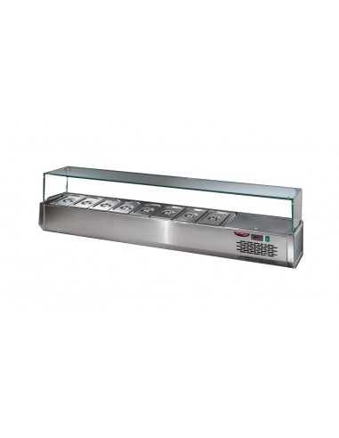 Vitrina para ingredientes - Modelo VR3190VD - Capacidad no. 8 bandejas - Vidrio plano - Estático - Temperatura 0°+10°C - Bandejas GN 1/3 (cm 32.5 x 17.6 x 15 h) - Dimensiones cm 190x38.7x45.5/47.7 h