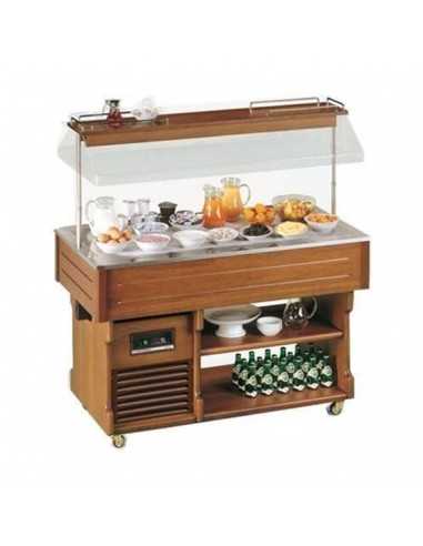 Isla buffet de madera con cúpula eléctrica y estantes - Temperatura +3 / +10 °C - cm...