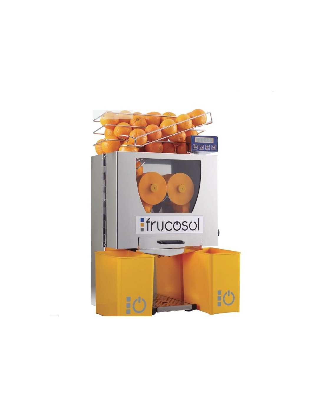 Exprimidor de cítricos - Modelo F50C - Acero inoxidable - Carga manual - Contador digital de naranjas - Capacidad 25 frutas por minuto - Volumen máx. de fruta Ø mm 85 - Alimentación monofásico - Dimensiones cm 47 x 37 x 73,5 h