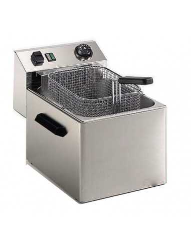 Freidora eléctrica - Modelo FE10T - Capacidad litros 10 - Dimensiones cesta cm 27.5 x 24.5 x 12 h - Energía kW 6.6 - Energía trifásica V400/50Hz - Tamaño Cm 36 x 42 x 32 h