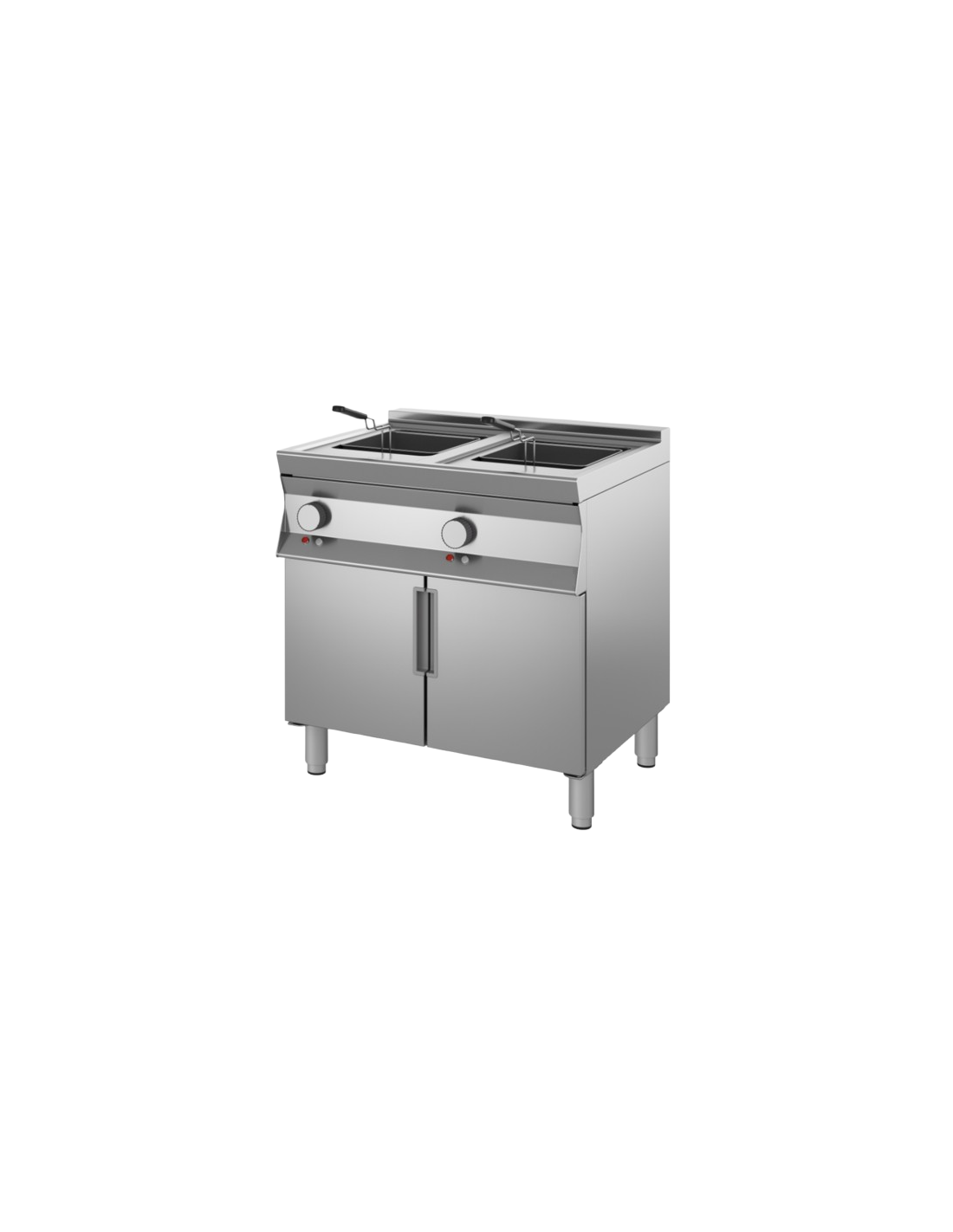 Freidora eléctrica - Modelo 7CFFE218 - Armario bajo - 2 puertas - 2 cubetas - Capacidad lt 18 +18 - Energía kw 28 - Dimensiones cm 80 x 70 x90 h