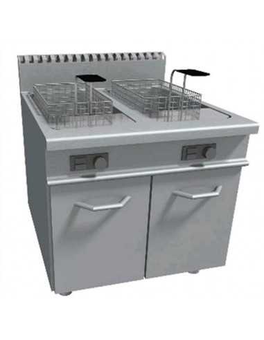 Freidora a gas - Modelo L9FLG2V17 - N. 2 depósitos litros 17+17 - Bastidor de acero inoxidable - Energía kW 33 - Dimensiones cm 80 x 90 x 85 h
