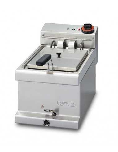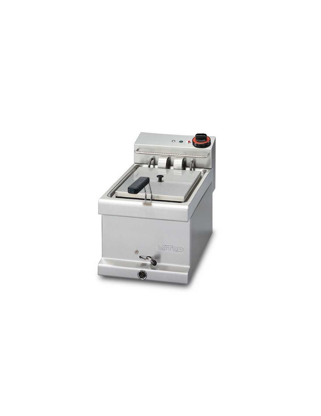 Freidora eléctrica - Modelo FEM-6 - Capacidad lt 6 - Alimentación monofásica - Tamaño de la cuba cm 22 x 32,5 x 20 h - Producción de patatas kg/h 7 - Dimensiones cm 30x 51 x 25 h
