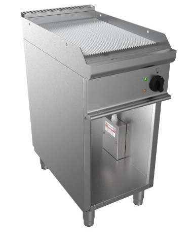 Fry top eléctrico - Modelo E7KTE1BARK - Placa acanalada - Marco de acero inoxidable - Energía kW 5.4 - Energía trifásica - Dimensiones cm 40 x 70 x 85 h